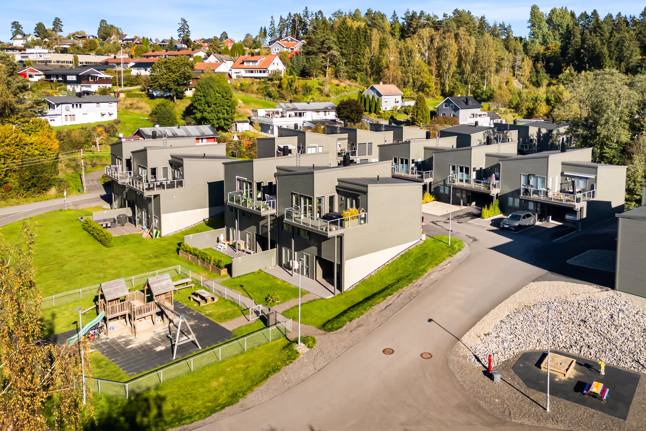 22 eneboliger i rekke – familievennlig idyll ved Varåa