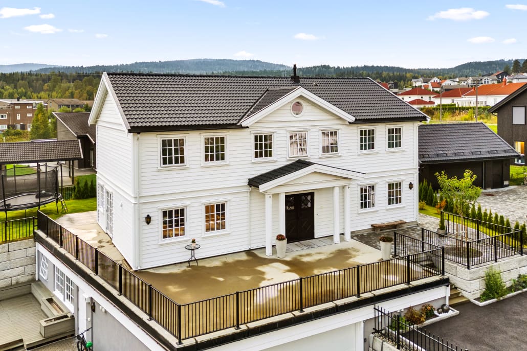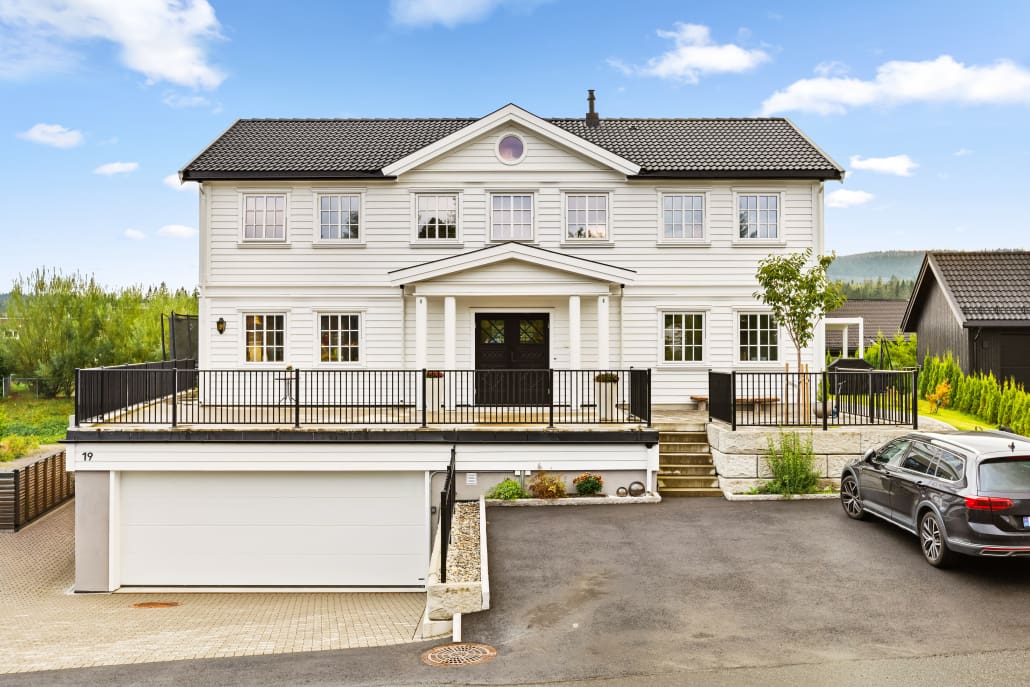 Denne romslige og innholdsrike eneboligen kombinerer tidløs arkitektur med moderne komfort. Med sitt klassiske uttrykk og gjennomtenkte planløsning, er dette et hjem som rommer både hverdagsliv og festlige anledninger – perfekt for storfamilien.